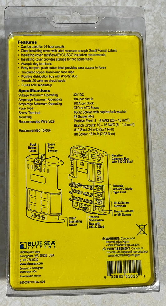 Blue Sea 5025 ST Blade Fuse Block W/Cover - 6 Circuit W/Negative Bus