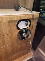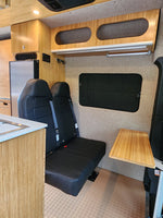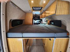 Custom camper built and finished 2023. Factory options include: seat swivels, power and heated seats, roof rails, 2" reciver hitch and trailer connections, parking sensors front and rear, camera at front rear and both sides, convenience package, 8" touch screen with Apple and Android play. BRAV custom ordered this van with most every option for upfitting a camper.