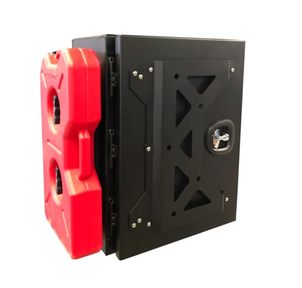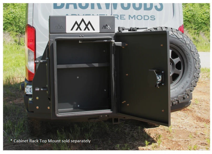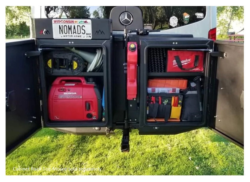 Every cabinet box comes with mounting flanges, a gas strut to hold the door open, and an adjustable shelf. Backwoods Adventure Mods understands weight is important so they've built their box out of .125" aluminum. They've also designed this unit to hold the weight of items like the Honda 2000 Series generator. and are compatible with tons of swing out accessories and add-ons.